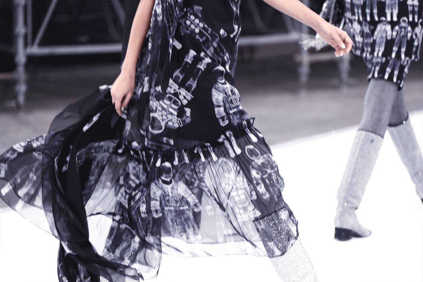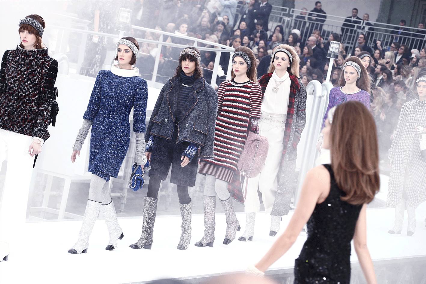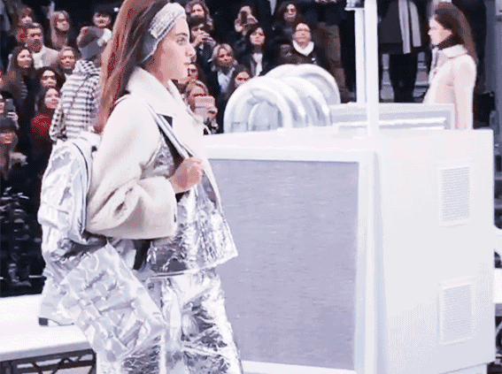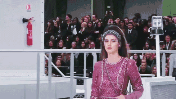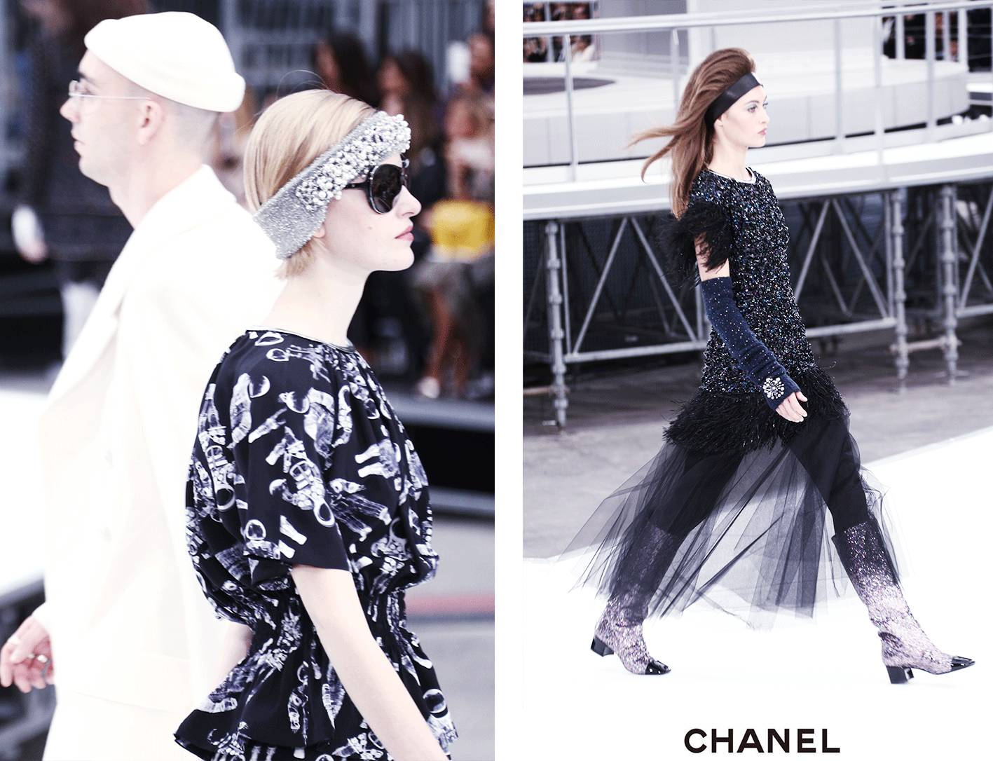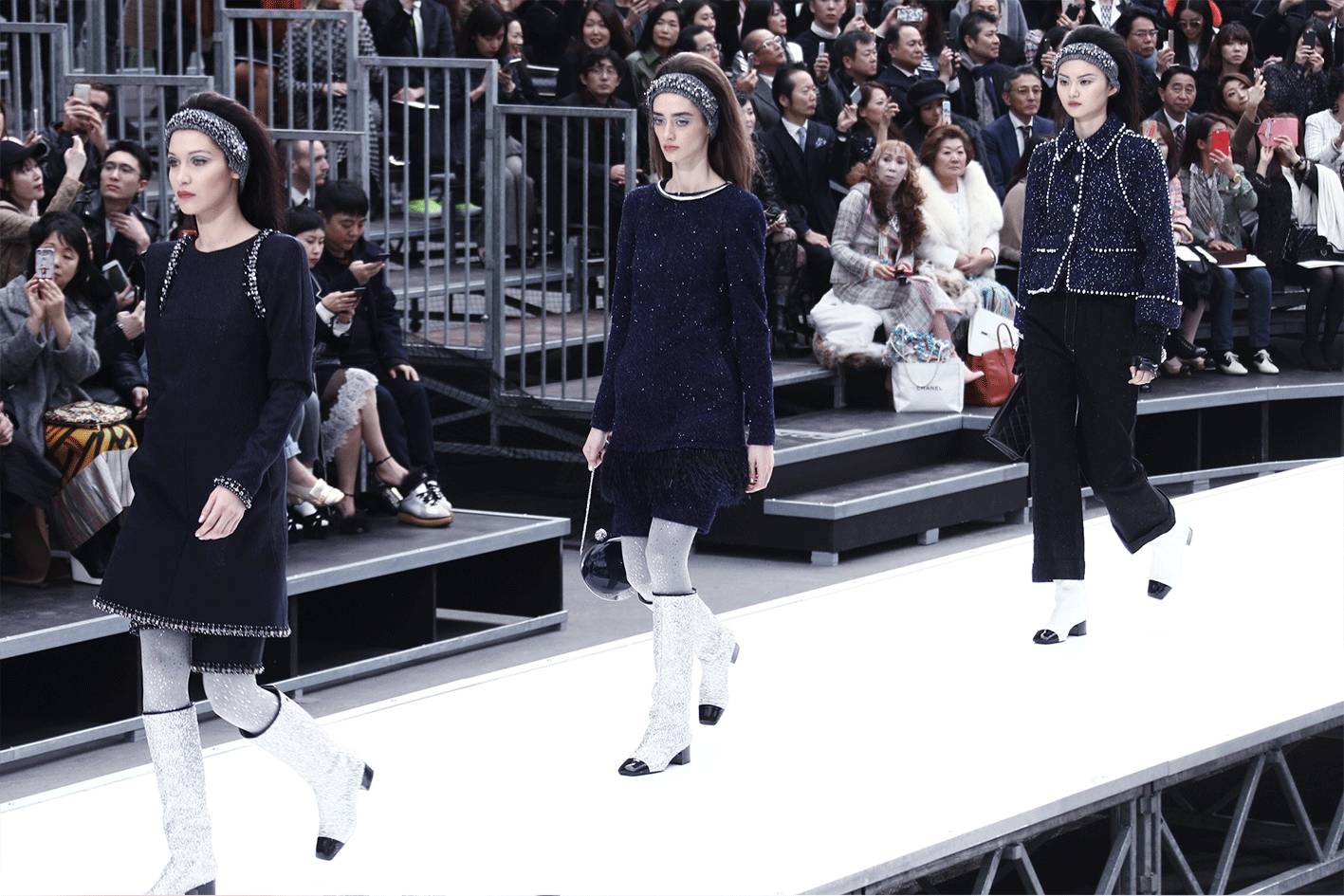 仰望着秀场中央杵着的35高的火箭,就知道老佛爷这一季又到外太空“搜刮”灵感去啦。无论是KARL LAGERFELD还是COCO CHANEL都对天外的那个世界有着美好的想象,CHANEL本人就是一枚星座控,这一季璀璨如星辰的发带正是从星座中汲取的灵感。老佛爷除了迷恋外太空还是货真价实的技术控,2017春夏系列玩的是机器人,2013春夏系列还玩过太阳能。所以这一季文科生与理科生同体,既有星空的诗意浪漫,又有科技的冷静严谨。
