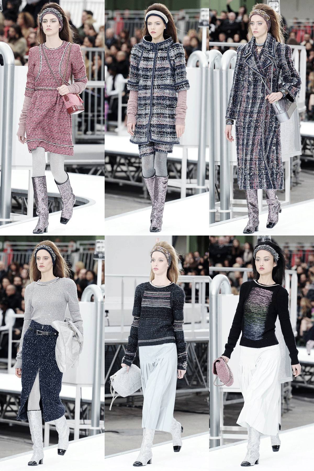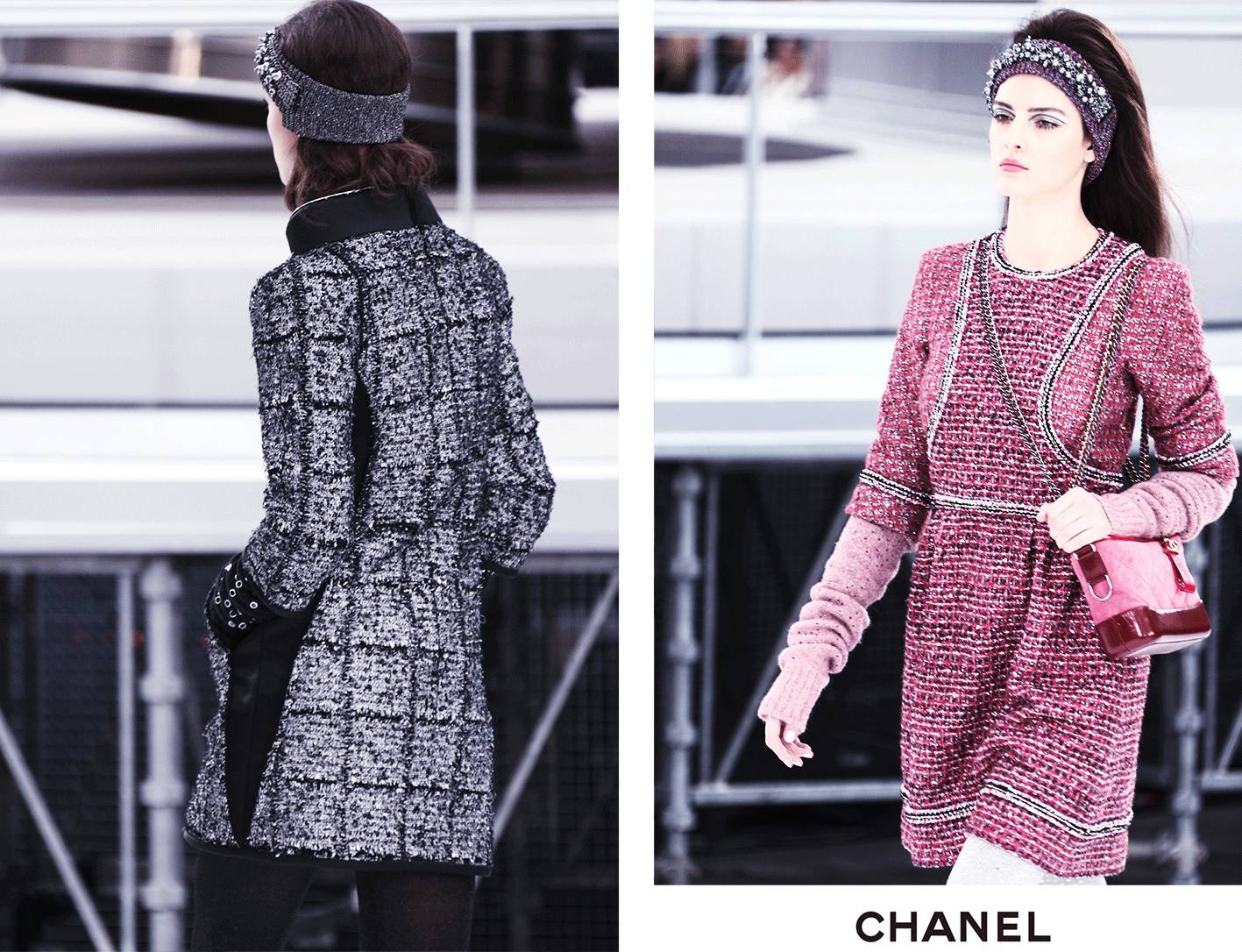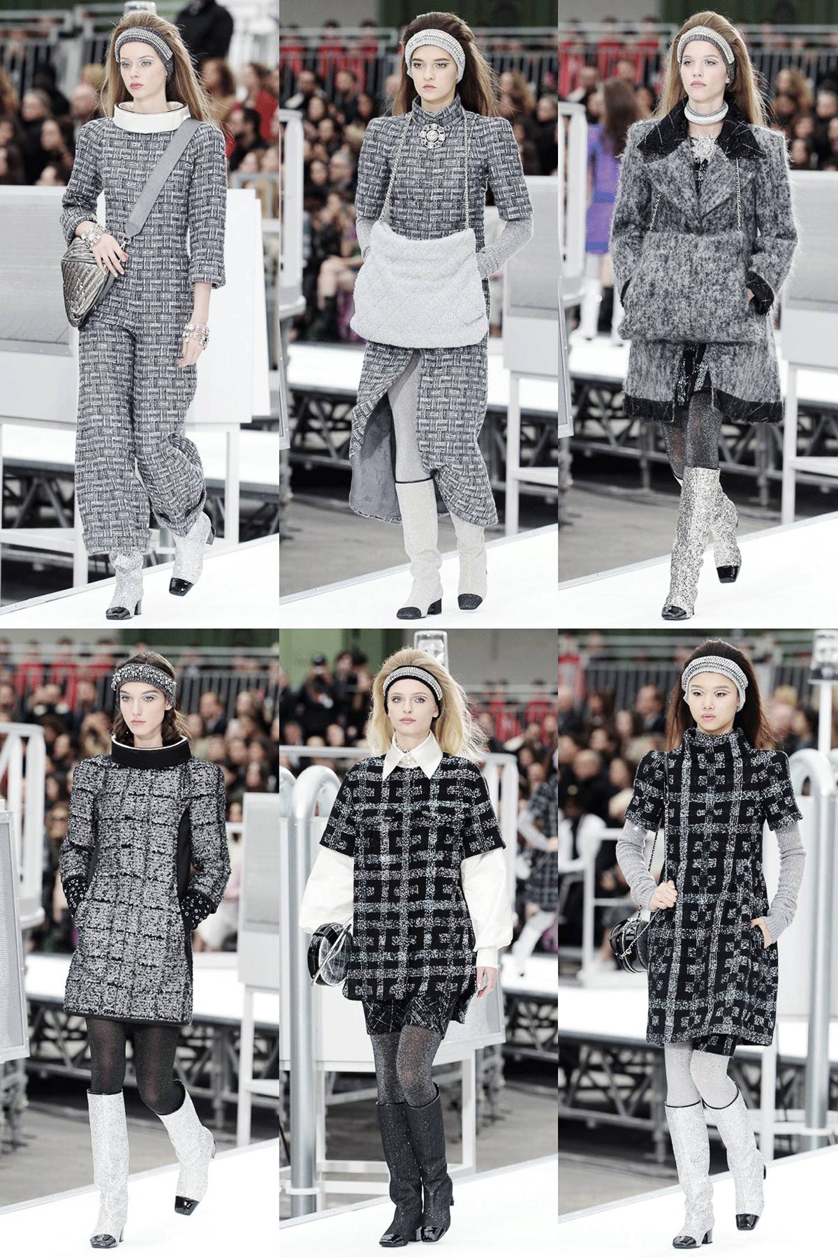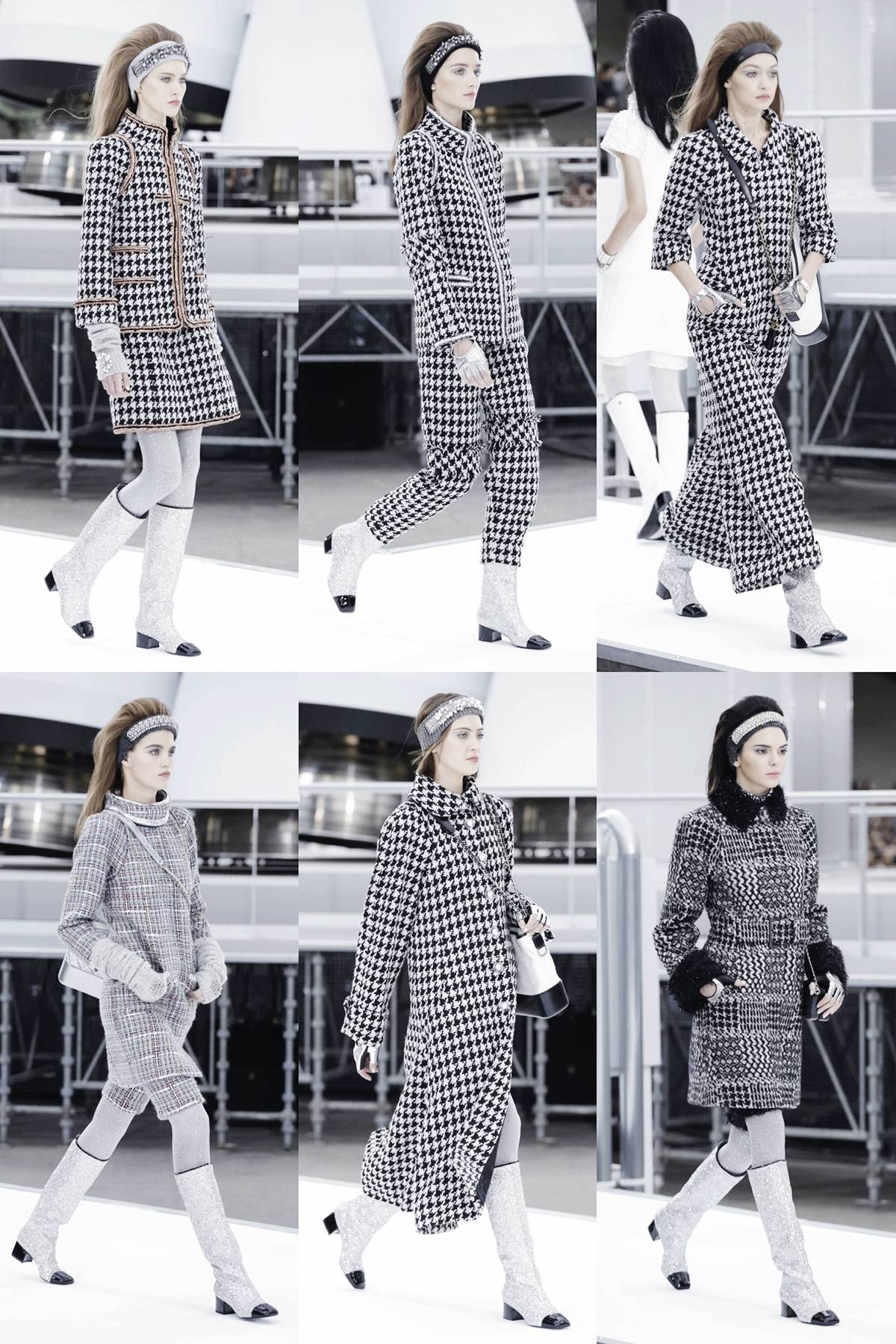 除了招牌式的斜纹软呢,这一季复古风格的面料还有千鸟格以及苏格兰格纹。老佛爷是太空科技与人文情怀两手抓呢。