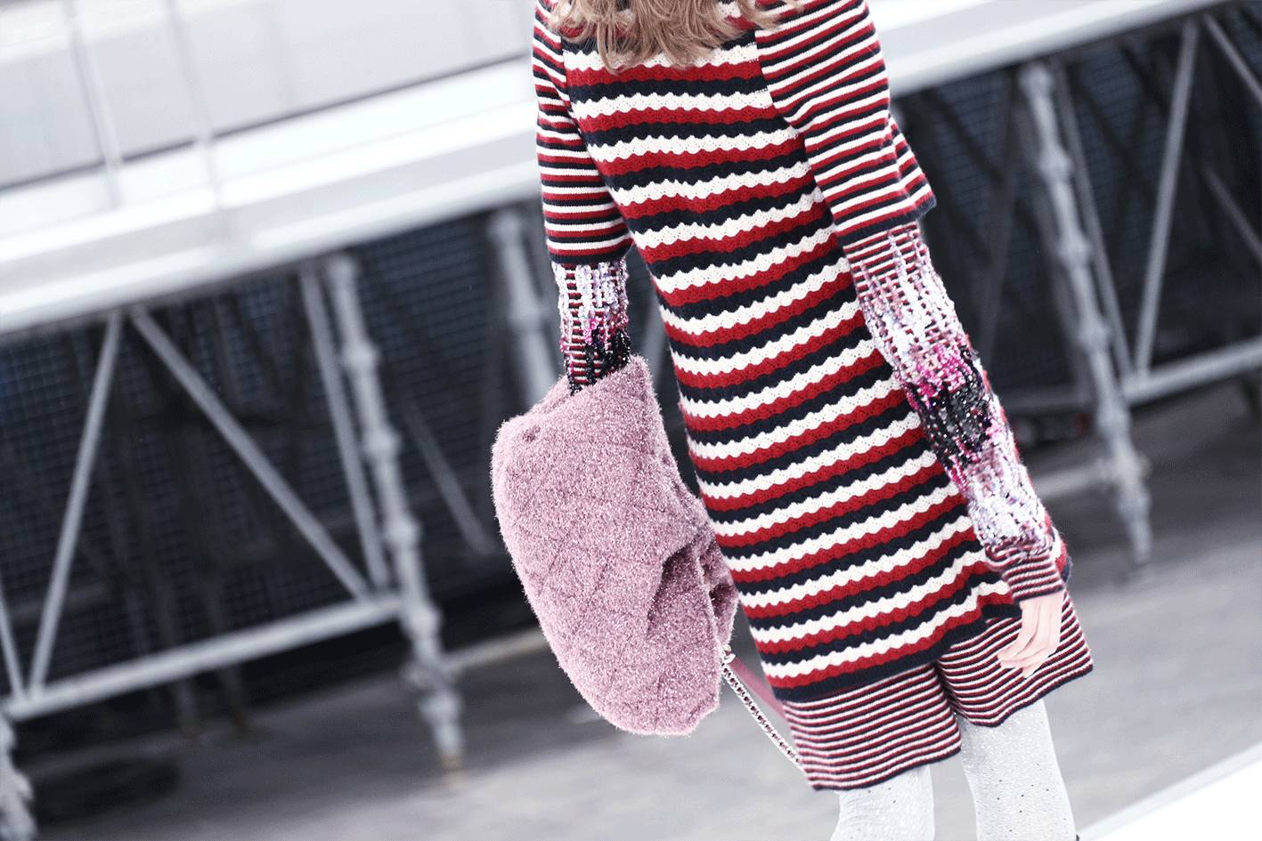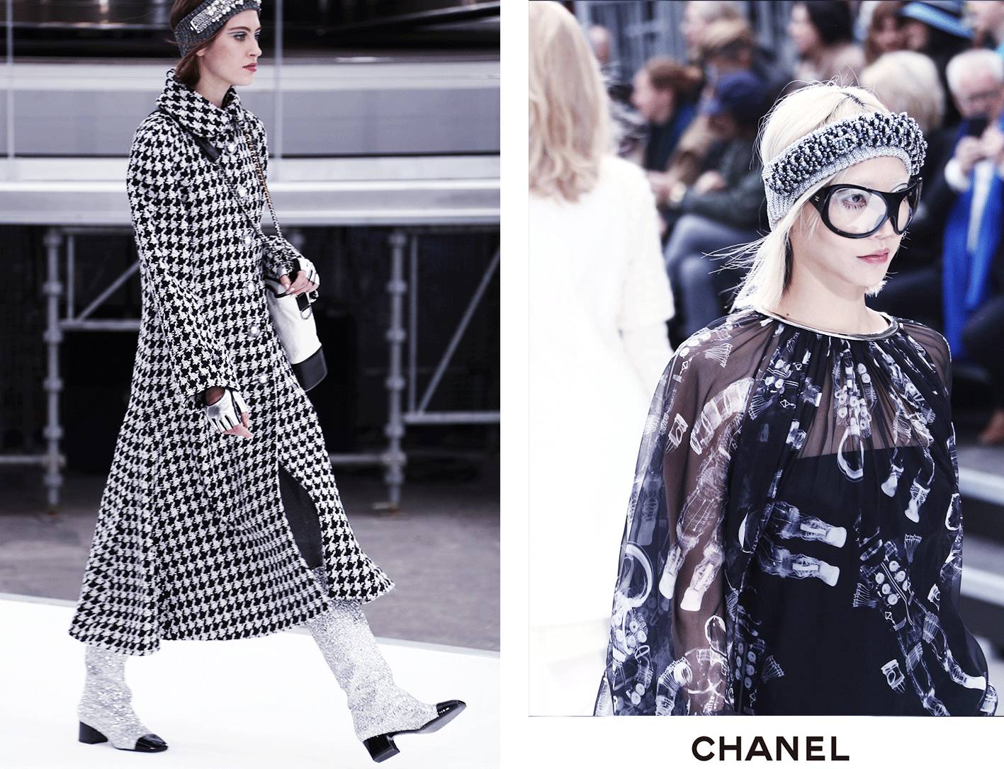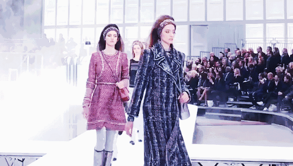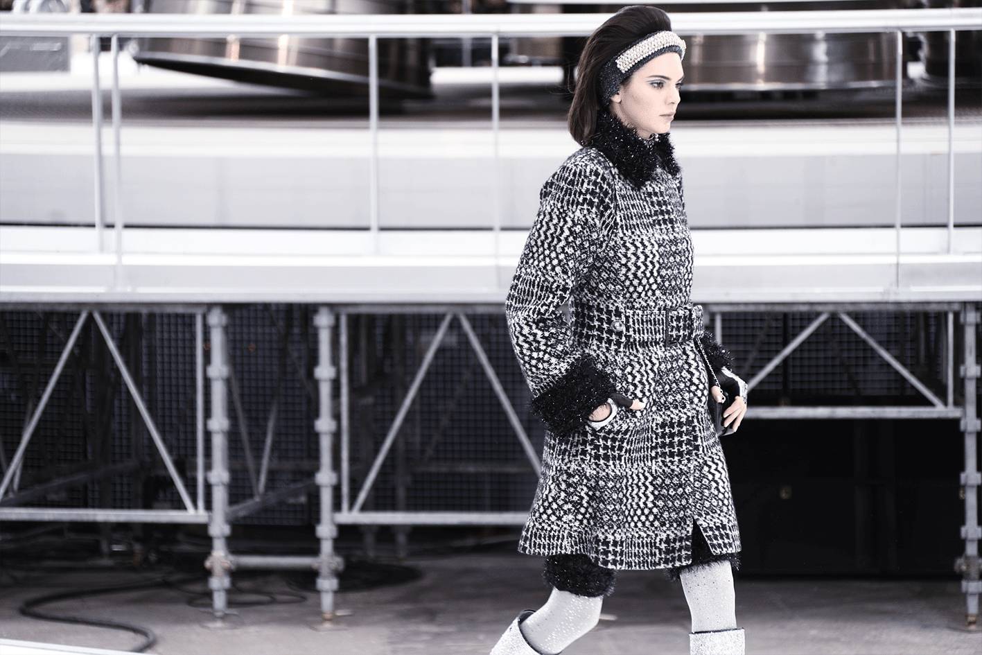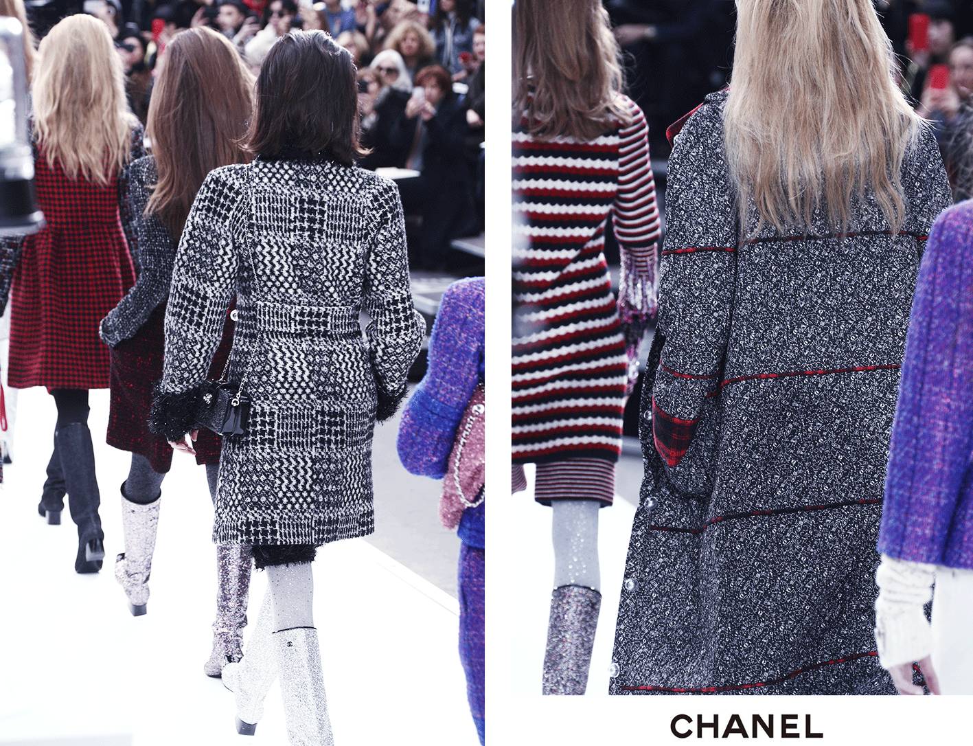 除了招牌式的斜纹软呢,这一季复古风格的面料还有千鸟格以及苏格兰格纹。老佛爷是太空科技与人文情怀两手抓呢。