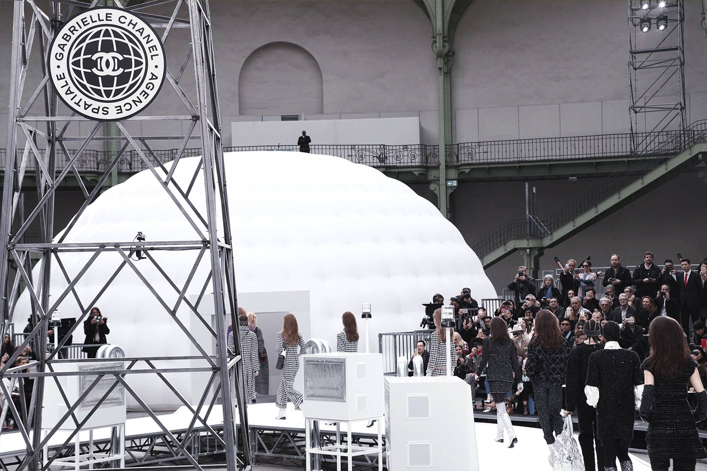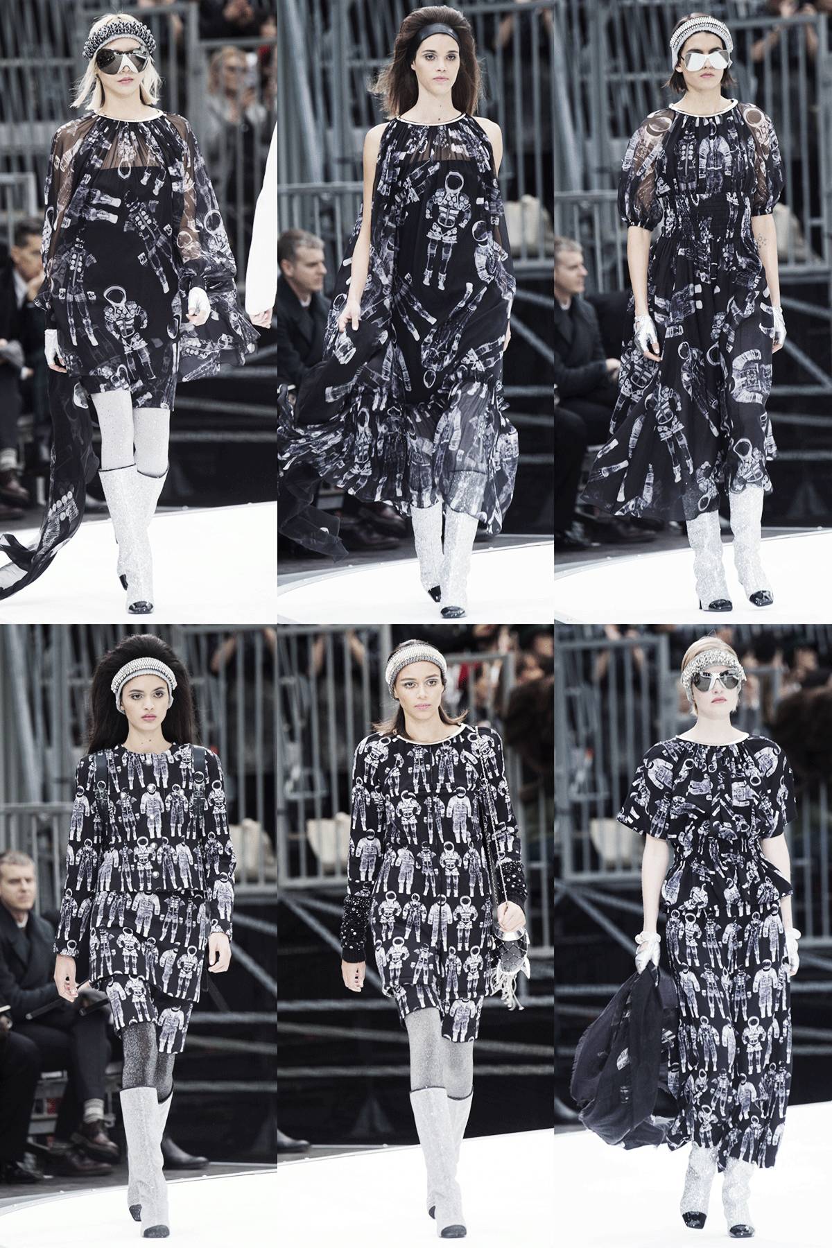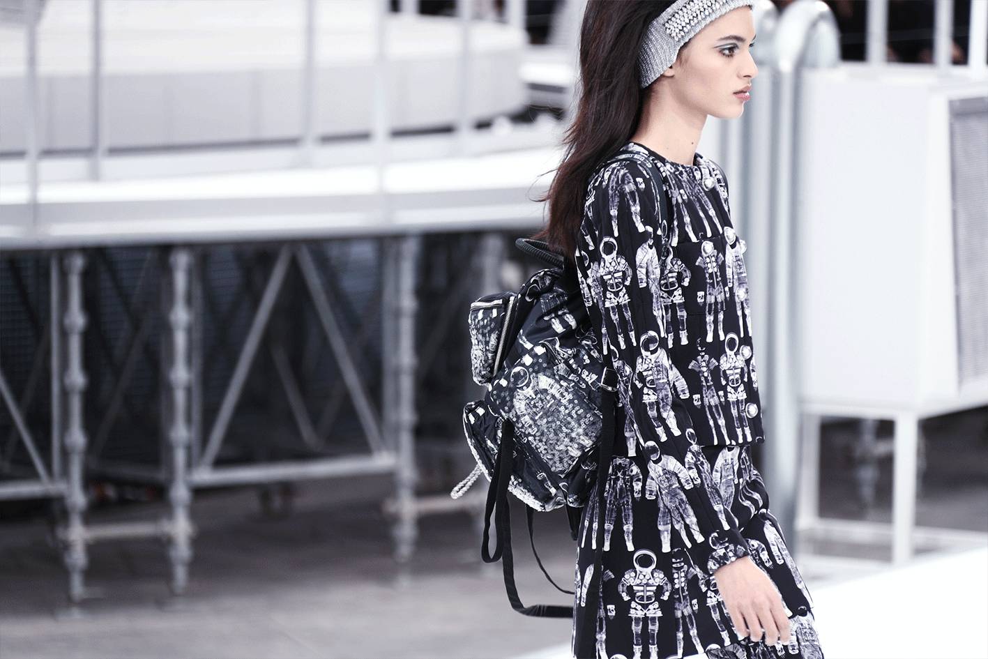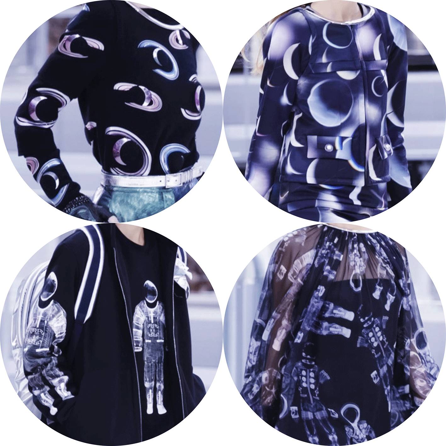 在完成如何赋予CHANEL经典风格以太空科技感的课题后,KARL LAGERFELD放开手来玩印花。宇航员或如同在太空中悬浮一般凌乱排列,或如同被地球引力控制着整齐列队。除了宇航员,星球图案当然也必不可少。