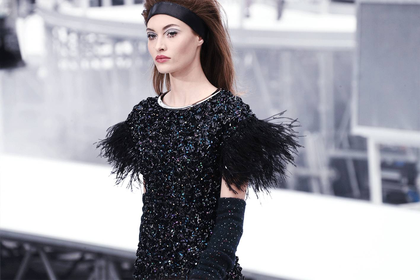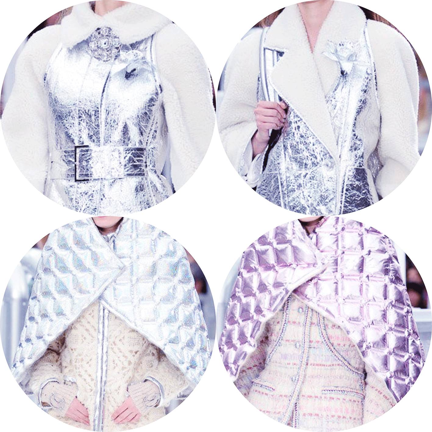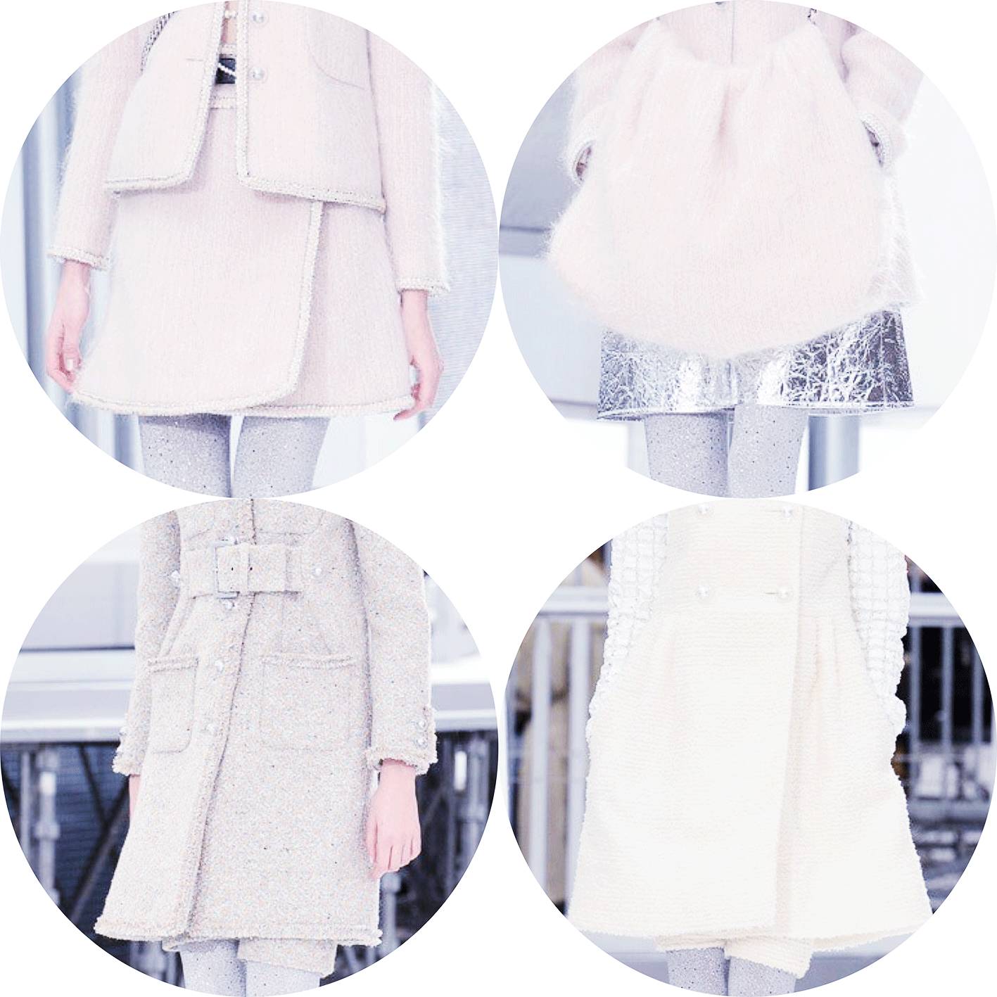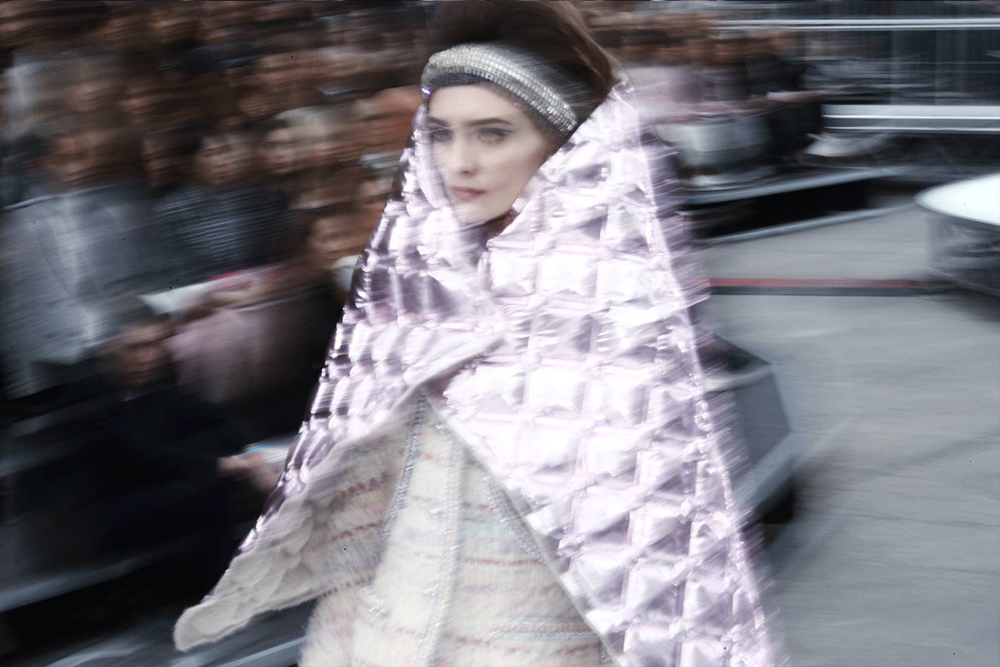 CHANEL经典的斜纹软呢如何“太空化”?答案是把星空搬来!在面料中织入金属丝线,或者用金属丝线刺绣,再或者请水晶、珍珠来帮忙,在柔软的面料之上织出一片璀璨的星空。