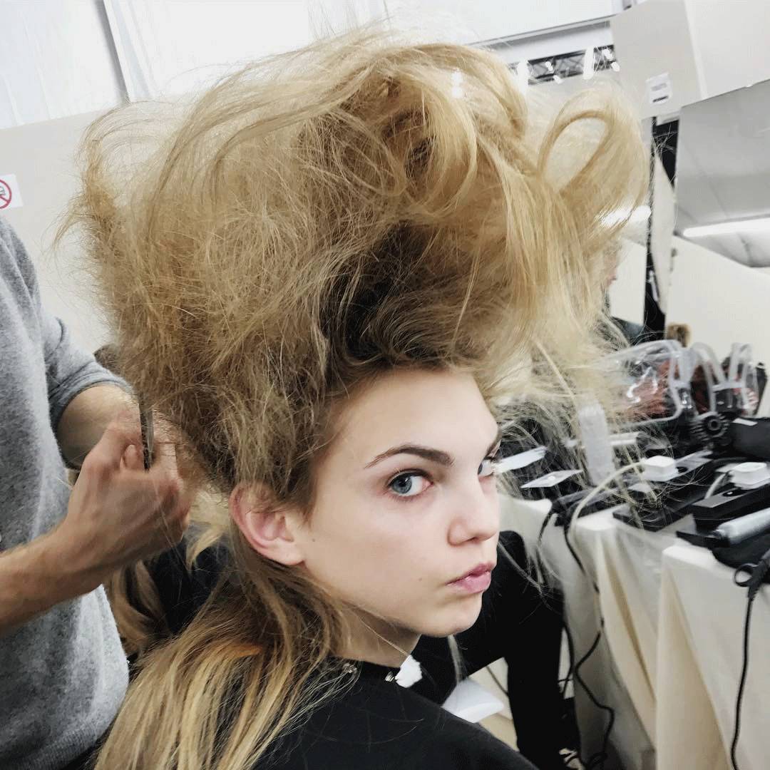 你一定感受到啦,这一季的妆发带着复古味道,麻豆们身上都有碧姬•芭铎的影子。可别忘记,碧姬•芭铎大红大紫的上世纪六十年代恰好也流行太空主义、未来主义。呃,要想完成六十年代女神头,还得先爆炸一把——
