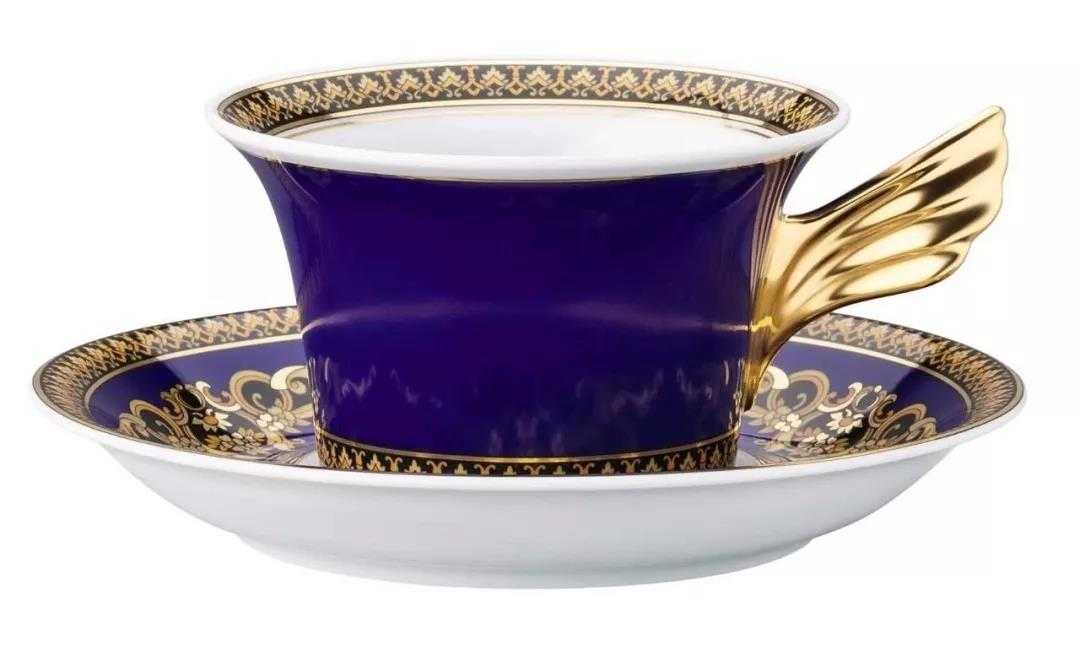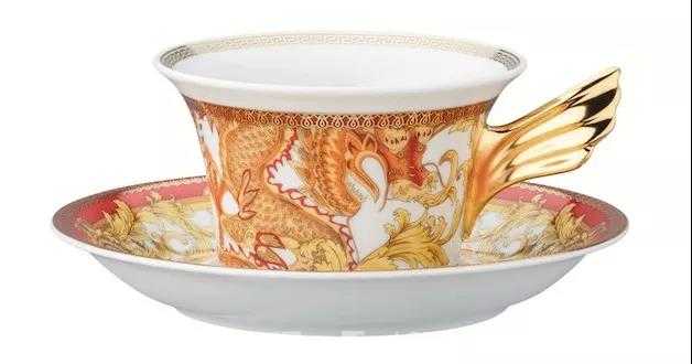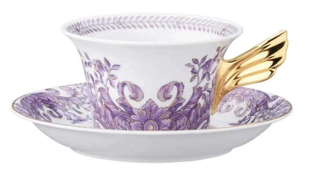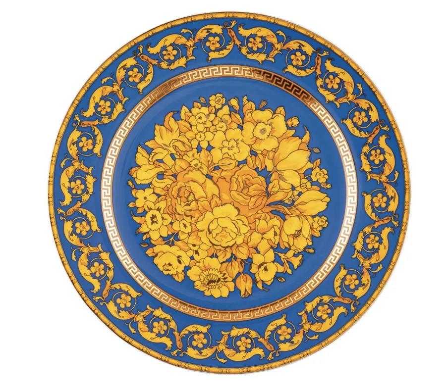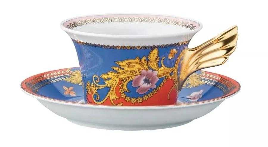 Gianni Versace在1980年代创立品牌时就为经典的巴洛克风格带来新生。他将传统图案转化为流行波普艺术设计,将意式壁画里的守护神和天使换做了金链条、美杜莎头像和豹纹皮革。Wild Floralia系列正是将这种炫丽的豹纹图案与金色的巴洛克花纹结合而展现出大胆创新的瓷器设计。