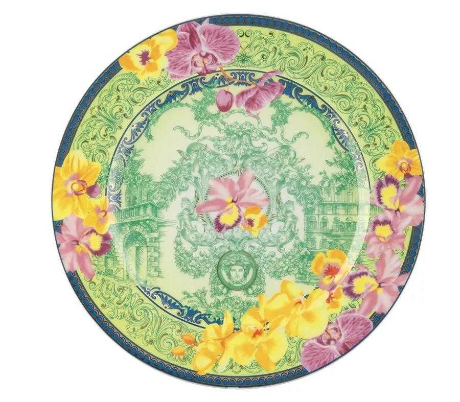 Floralia D.V.系列主题为范思哲独有的“Toilede Jouy”图案,青绿背景来自米兰Via Gesù街的Versace总部建筑和曾属于Gianni Versace的Villa Le Fontanelle别墅,再以浅粉鹅黄的兰花添彩,整体设计层次生动又充满纪念意义。