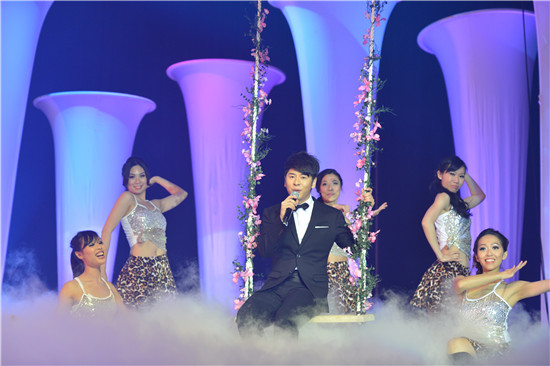 公主登场后,当然到英俊白马王子许廷铿现身舞台,全城期待的好声音,为大家先送上新剧「再战明天」的主题曲,再唱出首本大热歌曲「蚂蚁」及「青春颂」,年轻却有实力的唱功,掀起全场高潮,不愧为当今乐坛的新人王。最后,许廷铿唱出新歌「福气」,笑谓自己很有福气与十位佳丽相遇,亦祝愿温哥华的朋友生活满载幸福,并笑口常开! 许廷铿总不忘以执业牙医身份温馨提示,风趣幽默,抒缓佳丽颁奖前的绷紧情绪。