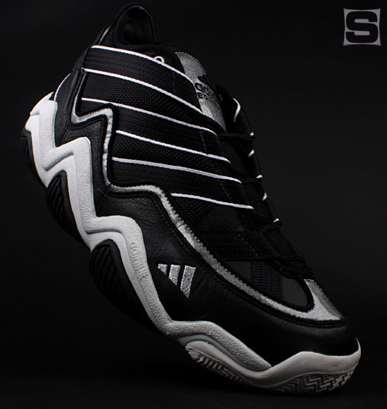 季后赛,科比早早的换上了EQT ELEVATION,不过,这双鞋被口耳相传至今并非因为这个,而是当年的扣篮大赛。科比精彩表现最终战胜雷-阿伦、迈克-芬利等人最终获得冠军。夸张的线条的和不对称鞋带的设计,EQT ELEVATION从此一战成名,成为科比早期的最成功的代表作。