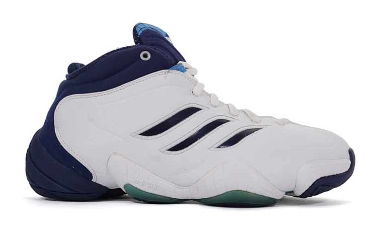 98-99缩水赛季推出的EQT KB8 II设计创新而实用,线条流畅的鞋面上,网面材质的加入很好的提升了透气性。在I代的基础上前掌加入了adiPRNE+,改变了此前天足鞋款没有缓震的弊端,最大的改进是鞋垫采用了adiLux,让天足的软性大底的连接不再那么突兀,实战表现更好,加上TORSION SYSTEM的延续使用。