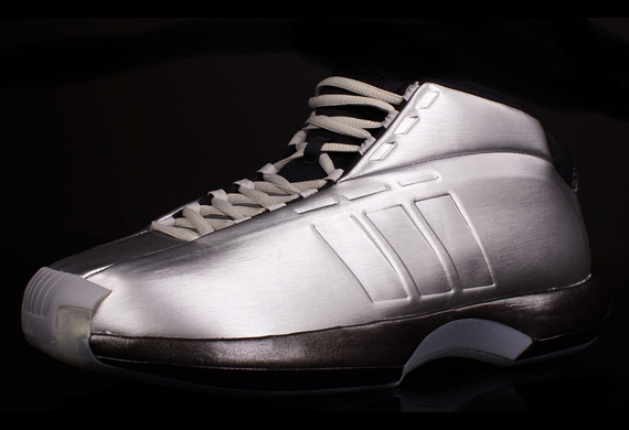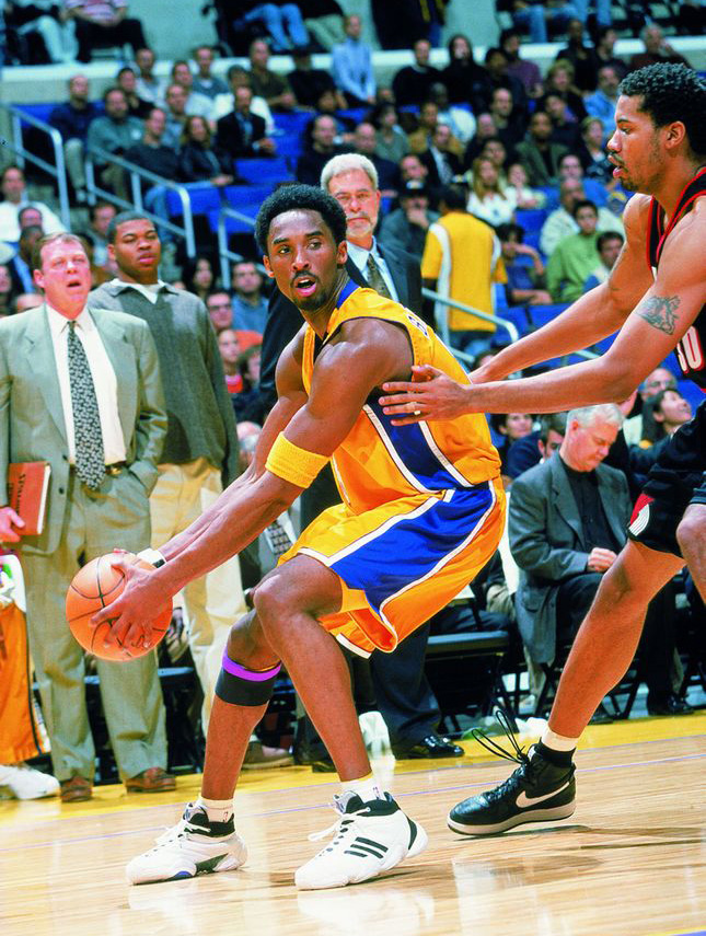 99-00季后赛后面的比赛,科比提前穿上了职业生涯最具争议的一双签名鞋——THE KOBE。放弃了天足,THE KOBE借鉴了TT的造型设计,阿迪为科比打造了这双外观夸张、性能却不太出色的THE KOBE。鞋子本身除了融合了贝壳头、采用新面料以外,还加入了全掌adiPRENE+以及TORSION SYSTEM。而就是这双THE KOBE,成了科比第一双总冠军战靴,也是历史上唯一一双拿到三个总冠军的战靴。