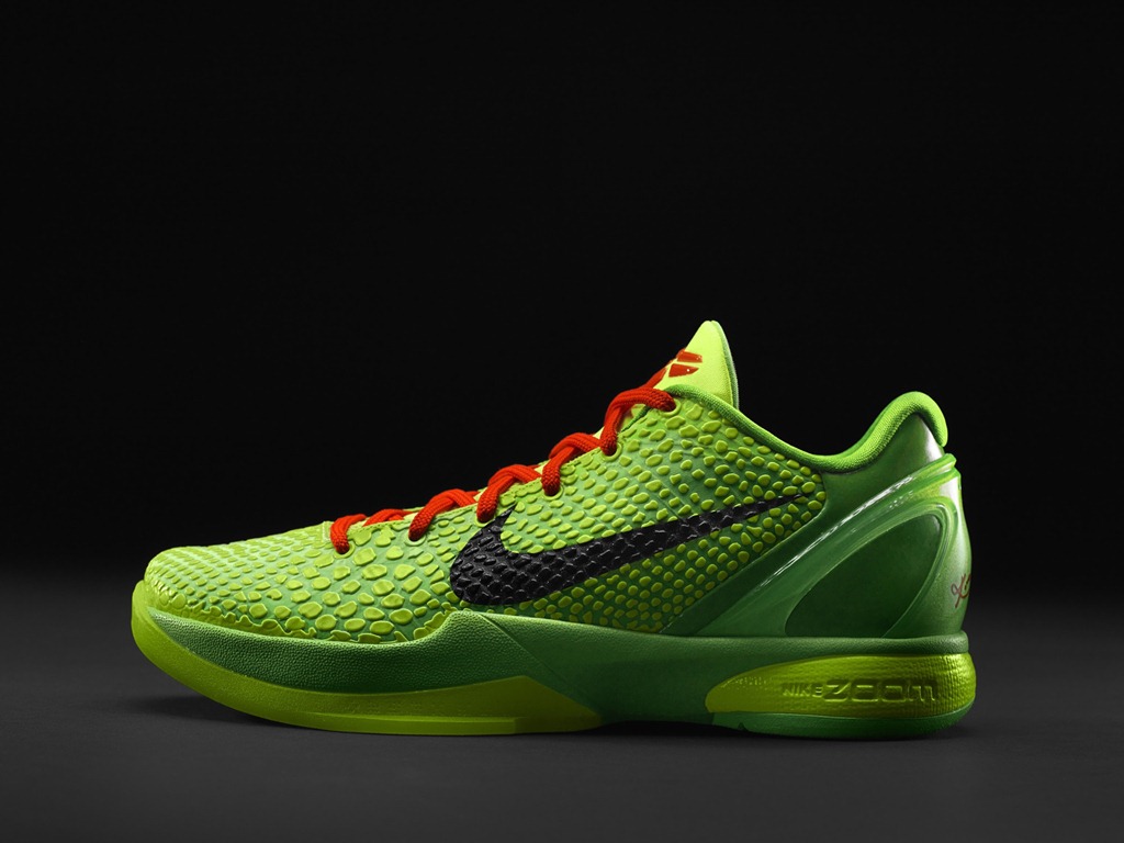 ZOOM KOBE 6加入了曼巴蛇的设计概念,ZK6的聚氨酯凸点网面像极了曼巴蛇的蛇鳞,10-11赛季,圣诞大战的青蜂侠配色也被戏称为竹叶青配色。尽管鞋面看起来科技感十足,但是实际的穿着中并不耐用,长时间的穿着容易引起硬质网面和凸点的折痕甚至破损,而在配置和性能上,ZK6保持了和前两代基本一致的水平。