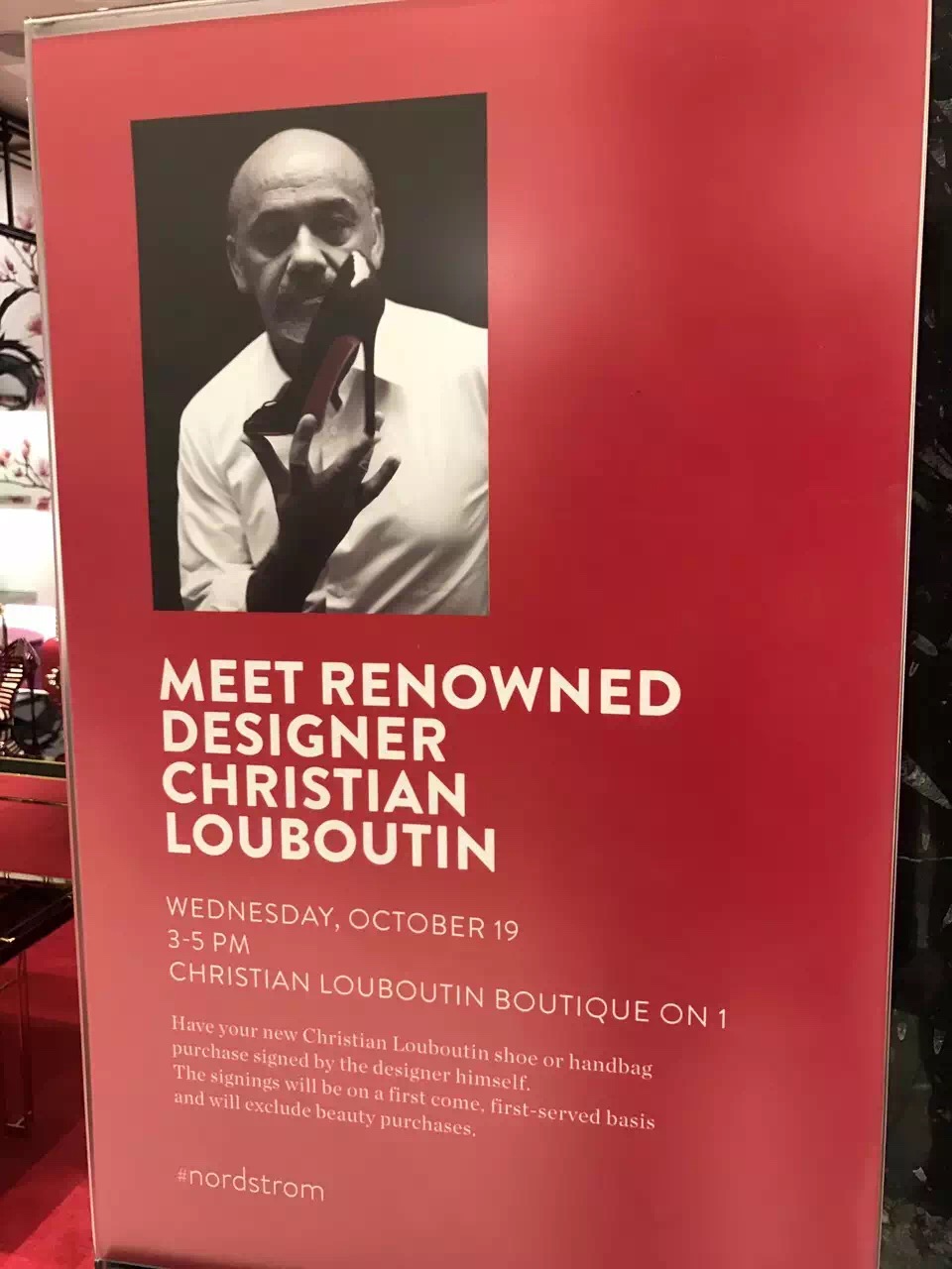 这位大师级的设计师第一次出现在温哥华就亲自驾临Nordstrom,在这里购买了CL的新鞋子和新包包可以找设计师本人签名哦!当然,签名是先到先得的,美妆产品不包括在内。现场还有香槟和马卡龙供大家享用!