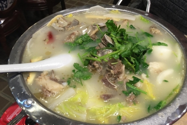 据悉是全温哥华第一家以吃羊的主题饭店,最有名的是羊腿,不过要提前预定。同样受欢迎的还有大炖全羊锅,看着分量不多,但其实羊肉都沉淀在汤底下面,羊肉肥瘦参半味道鲜美,羊汤浓稠们非常好喝。