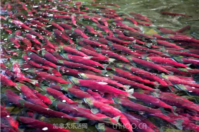 每年9月下旬到11月初,野生鲑鱼从太平洋重返出生地菲沙河,在主干道里产卵、繁殖,这是一次规模最大、艰辛而漫长旅程。在1,375公里长的水路上,可以看到五种太平洋鲑鱼。绯红色的鲑鱼遍体鳞伤、逆流而上,最终抵达浅显的北部溪流交配产卵,令人震撼。完成使命后的鲑鱼相继死去,成为饥肠辘辘的狗熊、老鹰和海鸥的盘中餐。
