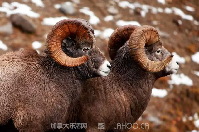 春、夏季可以在落基山脉Kootenay国家公园的雷迪安姆温泉小镇看到大角羊,但最壮观的是十至十一月的发情期。单身公羊们齐聚小镇,互相挑衅、踹踢,然后抬起后腿,顶着14公斤重的大角以35公里的时速迎头撞击,如此这般可以持续几个小时,就是为了赢得母羊的欢心。撞击时发出的声音像大锤一样响亮,1公里之外都能听到。小镇每年11月初都会举办为期2天的撞角节,以展示这一年度盛事。小镇上还能享受加拿大最大的天然温泉。