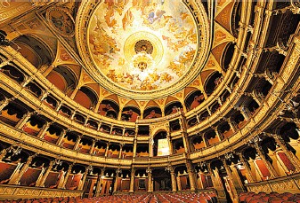 匈牙利国家歌剧院由建筑师MiklósYbl设计,1884年完工,这里被认为是建筑大师的杰作之一。这座新文艺复兴结构的歌剧院,装饰着当时匈牙利顶级艺术家的绘画和雕塑,还有一盏手工制作的青铜吊灯。剧院门口竖立着弗朗兹•李斯特(匈牙利钢琴演奏家和作曲家)和艾凯尔•费伦茨(匈牙利作曲家)两人的雕塑。这里的音响效果仅次于意大利斯卡拉歌剧院和法国巴黎歌剧院,居欧洲第三位。