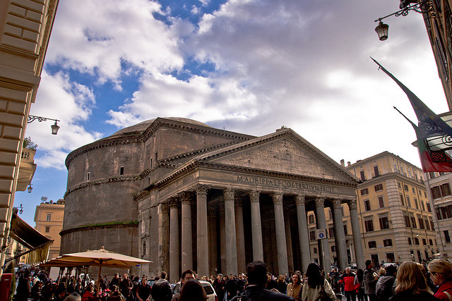 古罗马保存最完好的建筑,已有2000多年的历史,从外观上看已经破败,但是这座建筑史上里程碑式的建筑内部仍然令人震撼。神殿的圆顶是一个完美的半圆,直径43.3米(与内部高度相等),被认为是有史以来最大的砖石拱顶。光线从屋眼——圆顶上一个9米的口子进入。外部是16根科林斯柱式。这里还是罗马皇帝埃玛努埃尔二世和著名画家拉菲尔的坟墓。
