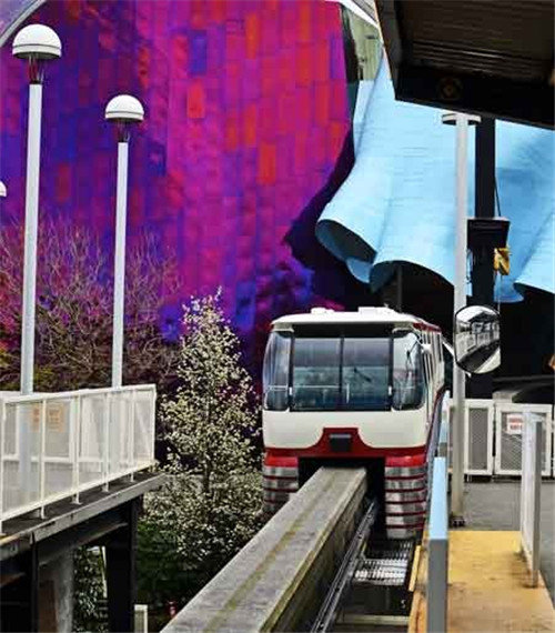 当初为配合世界博览会才设计规划的Seattle Center, 为了与Seattle Downtown相连接,特意修建了一条空中单轨。单轨总长只有2.4公里,中间没有任何停靠站,单程只需2分钟。现在单轨的观光价值可能已经远高于其交通意义了,不过如果不想开车去Downtown的话,搭乘单轨还是挺方便的。单轨在Seattle Downtown的终点是Westlake Center,一座很大的购物中心,从那走到Pike Market Place和码头只需10分钟左右。另外从空中观看西雅图的市容,街道和建筑也是别有一番风味的。