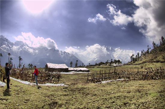 西藏山南边境地区还有个叫扎日沟的地方,非常地漂亮,胜似仙境。终于有机会前去探个究竟。从拉萨到扎日沟要路过山南地区还然往雪山中走去,一路上总是在雪山中穿行,一会儿阳光明媚,一会儿大雪纷飞。扎日沟里四季分明,春天满山遍野盛开着杜鹃花,红的、紫的、黄的、粉的,把整个山上染得五彩缤纷。山下还有个温泉,据当地人讲,泡此温泉可治百病,我也泡了,治不治病不敢说,确实舒服,心里上也得到安慰。