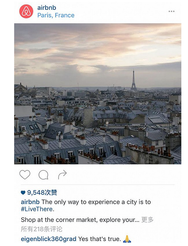 在Instagram上,Airbnb发起的Live There宣传在1天时间内就收获了9000多个赞,上百条支持的评论。