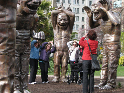 温市英吉利湾旁的14尊大笑铜像雕塑(A-Mazing Laughter)终于可以长留温市了,Lululemon运动品牌的创始人威尔逊(Chip Wilson)夫妇出资150万元予温哥华双年展,授权买下这批艺术品并使其永久停驻温哥华。