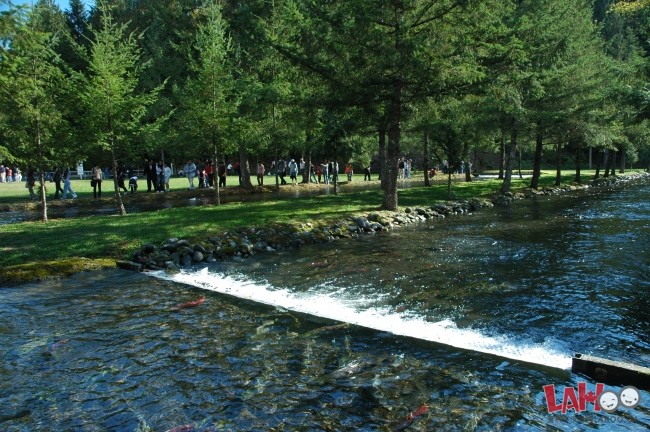 每年的9月到11月,是加拿大不列颠哥伦比亚省鲑 鱼洄游产卵的重要时期,而每四年则有一次规模盛大的大洄游发生。在大洄游发生的时候,数以百万计的三文鱼将游回到它们出生的河流。如此壮观的生态奇景当仁不 让地成为不列颠哥伦比亚省秋季热门的旅游热点,吸引着世界各地的游人前来目睹。