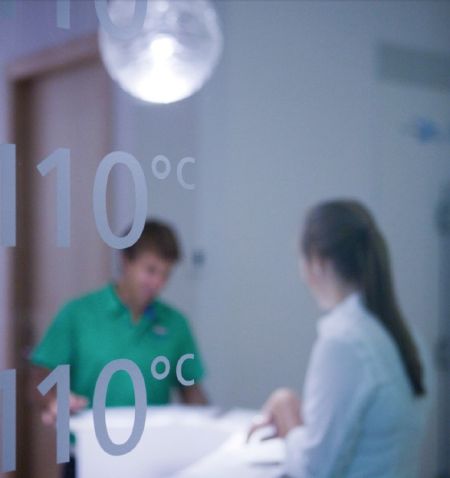 在预订的时间抵达冷桑拿接待室, 我心里还是有些惴惴不安。接待室的外部玻璃上写着“-110°C ”的字样。理疗师杰克杰克和他的助手安娜接待了我,他们先询问我的个人情况, 然后给我讲解身后的冷冻房的使用说明以及我需要注意的事项。也许杰克看到我的眼神里流露出些许疑惑, 他鼓励我, 并表示他会全程跟随着我, 好让我宽心。接着我被要求脱下外套, 浑身上下只在脸、手、脚等部位套上厚厚的护套, 其余均裸露在外。这身行头有点怪, 看到杰克穿着一身厚厚的羽绒服, 我不禁大呼“ 不公平” 。可是人家一天要陪客人进出极限低温里多达几十次呢。