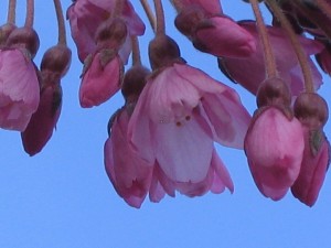 贝尼垂枝樱(Beni-shidare):五瓣钟形深粉色花朵,常见于住宅种植。有细长并且明显的垂枝现象,往往可以垂到地面。此樱花树可长至8米(25英尺)左右。
