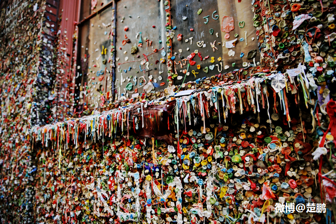 美国西雅图的派克市场剧院旁有一堵非同凡响的墙——口香糖墙(Gum wall),放眼望去,满眼都是无穷无尽的口香糖,这才是名副其实的重口味。