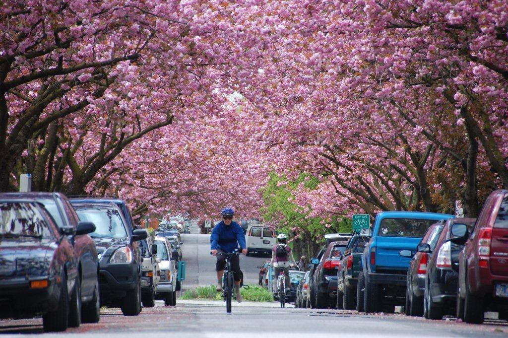 ►Oak街至Laurel街之间&12th Avenue南侧地区有许多天野川樱(Amanogawa)。