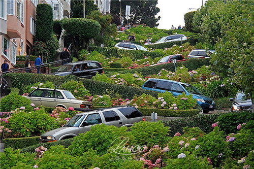 自驾的体验更有意思。这一代开车转过了,你就会明白为什么旧金山是手动车驾驶者的地狱。花街下去第二个路口右转,是三藩目前最陡的一个上坡之一,自驾的话可以去试试。(下图)