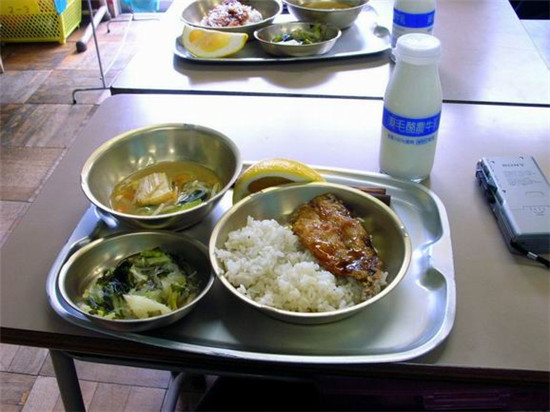 说到营养均衡易消化,日本的饭堂绝对是佼佼者,荤素搭配,口味偏清淡,另外还会为学生准备好鲜奶、水果和汤,虽然少肉多菜,但摆盘整齐干净,感觉吃起来会非常舒服,这样的餐点其实非常值得推崇。