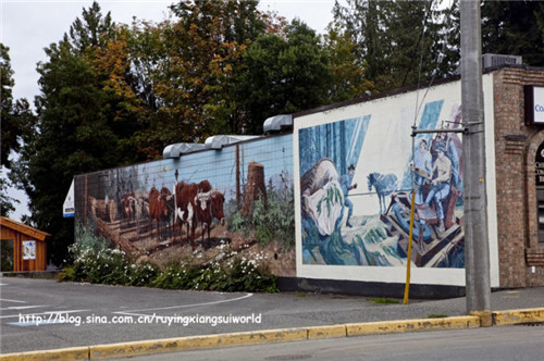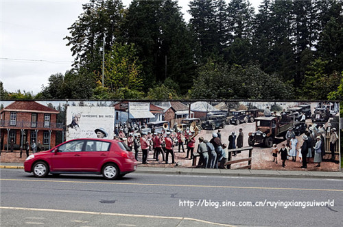 一座富有艺术气息的小镇,在温哥华岛的当肯市(DUNCAN)和乃磨市(NANAIMO)的中间.名字叫作壁画镇(CHEMAINUS).是一座小巧玲珑的小城,人口只有4000多,原来是一个采金子的地方,后来金子采完了,人们就渐渐离开了,小镇的人口越来越少,到了濒临废弃的边缘。