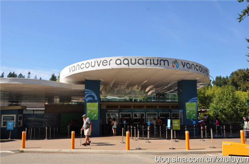 温哥华水族馆位于“斯坦利公园”内。水族馆共分三层,一层有大量的海洋生物——水母,小型鱼类,二层有热带雨林生物——鸟、蛇、蝴蝶、蝙蝠等,地下一层与室外相通,有海豚、海狮、海獭和企鹅等。