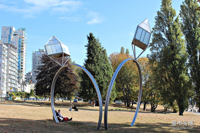 温哥华全市数百座艺术雕塑中,就有不少是这样的组合:当你专注于欣赏艺术家匠心独运的创作中,不经意回头,壮阔的山水海景将你震慑到说不出话……. 这样的惊心动魄也算是幸福的一种吧!