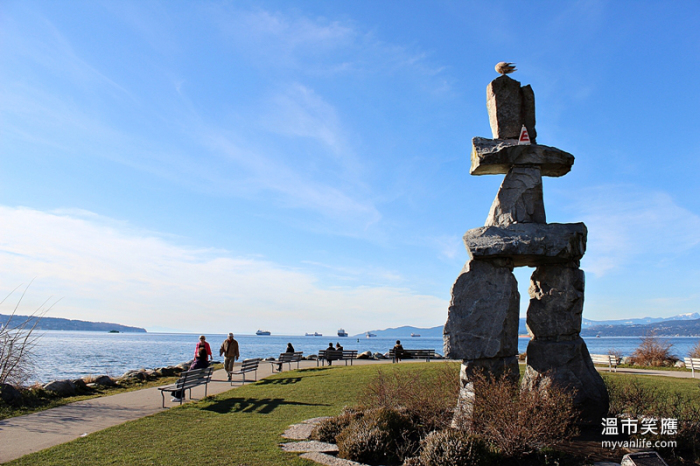 浑身散发古朴手雕风格,一座总重31,500 公斤,以六颗庞大大理石堆成人形的Inukshuk远眺英吉利湾。这名字是原住民语,原意是“丰收的鱼获”,2010年温哥华冬季奥运采用它作为奥运的吉祥物。