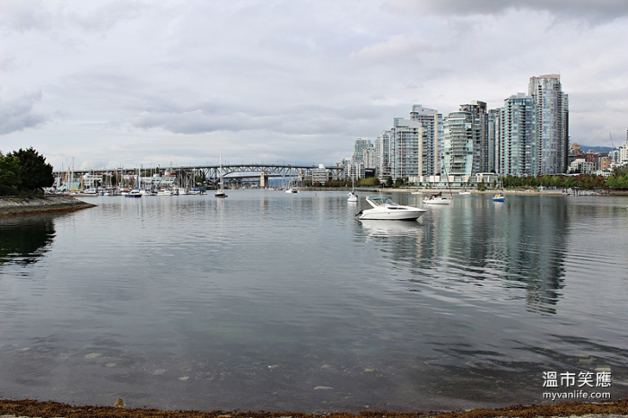 巨怪鸟的陪伴风景:福溪 (False Creek)。从字面就可得知其实它并不是一条河,是一个深入内地的海湾。福溪切入温哥华市中心以及住宅区的心脏,既现代又原始。往来的彩虹水上计程车,夏季独木舟轻快穿梭,端午前后赛龙舟的呐喊声,福溪忙碌地最有人情味。