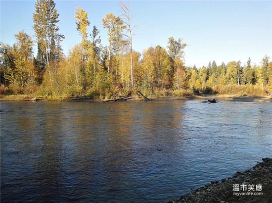 十月初的加拿大内陆秋意已浓,林相萧瑟,枝头黄澄澄一片。气温未及十度,初露面的晨曦蒸起层层晨雾,低低地在河水上方弥漫。露水在草丛间;路旁的路标木柱和野餐桌裹上一层厚厚的白霜。