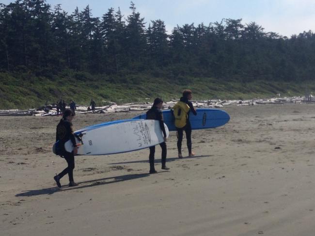 Tofino小镇上的冲浪用品店和学校随处可见,你可以根据自己的情况选择“私人教练”或上“集体课程”。衣服和冲浪板均由学校提供。