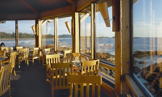 The Wickaninnish Inn – 一间建在岩石上的酒店。2012年被Traveller杂志选为全球top100的旅馆之一(全加拿大仅3家得奖),Travel+Leisure杂志也将它评比为全北美顶级六间resort里的其中一间。盖在太平洋海边黑色岩石上,全馆采用天然的木材为建材,风格则是走 “rustic elegance”的路线,即冲突又协调的后现代原始,让人非常的放松。Point Restaurant的整个餐厅是270度的大玻璃海景,不管坐哪边都绝对可以欣赏到无敌海景。