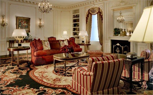在近一个世纪中,历任美国总统都会下榻酒店总统套房的传统,也始自胡佛总统。而卸任后,胡佛总统直接从白宫搬进了华尔道夫酒店塔楼的私人套间里,长住30年之久。这里需要说明的是,华尔道夫酒店28楼以上的部分被称为塔楼(Waldorf Towers),全部是豪华套间和公寓,拥有自己独立的入口、check-in大堂、私家电梯以及私家站台(可直通纽约中央车站),入住的客人非富即贵。又因为历任总统频频入住,1969年酒店重新装饰总统套间,使之贴近于白宫典型的乔治亚(Georgian)风格,全部绘画都是美国画家手笔。