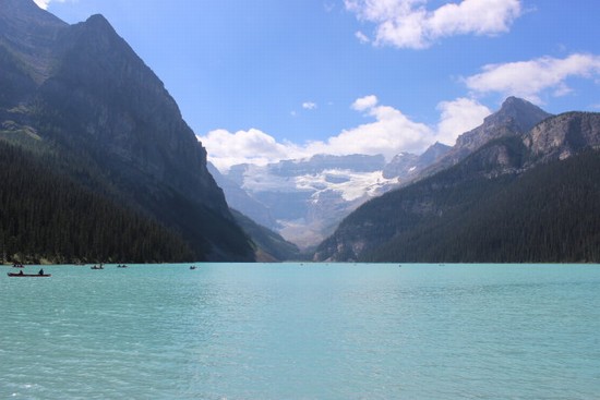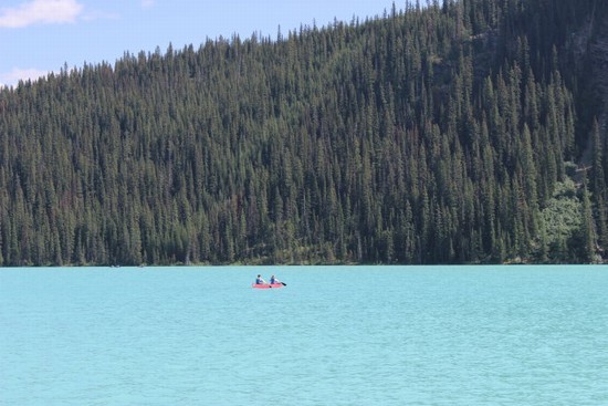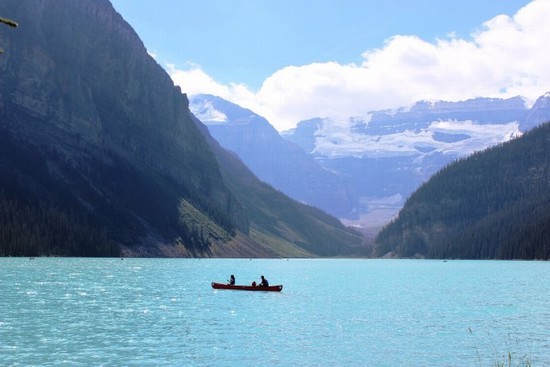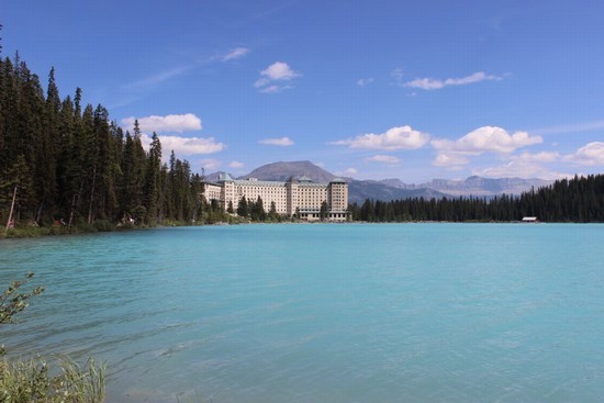 图7:没吃成下午茶也好,省了钱,更省出了时间,使我们有更多的时间在路易斯湖游览。路易斯湖在它刚被来此修筑太平洋铁路的白人发现时,曾被命名为“翡翠湖”(很贴切吧),但是后来为了向英国维多利亚女皇的小女儿路易斯-阿尔伯塔公主致敬,被更名为“路易斯湖”(Lake Louise)。