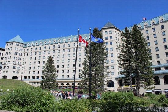 图5:来城堡酒店,本来是要在这里吃著名的英式下午茶的,但是到了这里被待者告知:Sorry,所有餐位全部被预订出去了!顺便说一句,Fairmont旗下的几家大酒店的英式下午茶都很有名,比如维多利亚的皇后酒店、昨晚住宿的班夫泉酒店和这个路易斯湖城堡酒店。