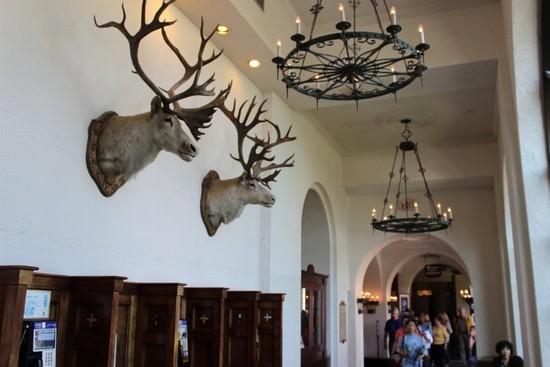 图4:路易斯湖城堡酒店的走廊内饰。本来路易斯湖附近设有为游客提供的免费停车场,但是因为8月份正是落基山的旅游旺季,路易斯湖又是游人必到的景点,所以停车场上一个空位都没有,很多车在停车场里一边兜圈子一边等车位。没办法,我们只好把车停在了城堡酒店的停车楼里,尽管这里的停车费很贵。