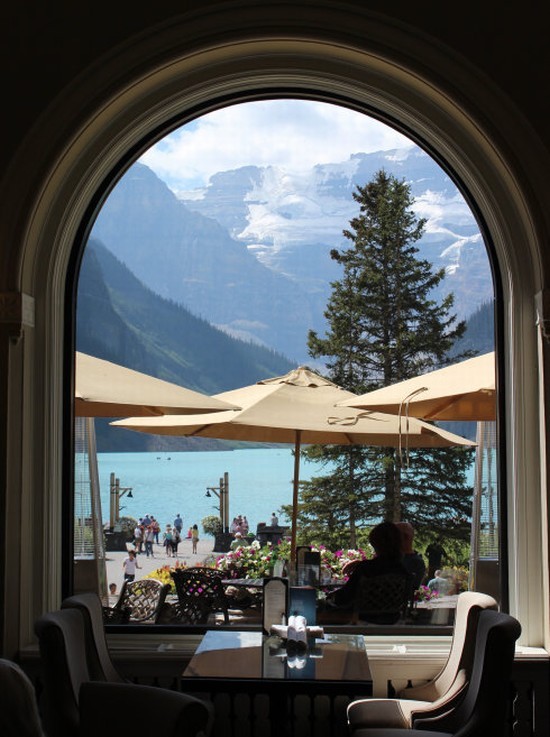 图6:我们因为没有预订,没都吃成城堡酒店所谓的“正宗英式下午茶”,只好在酒店里的这家快餐厅里随便吃了点东西。在此提醒大家,以后来这里旅游,如果是在旺季,想吃路易斯湖城堡酒店的下午茶,最好提前预订。