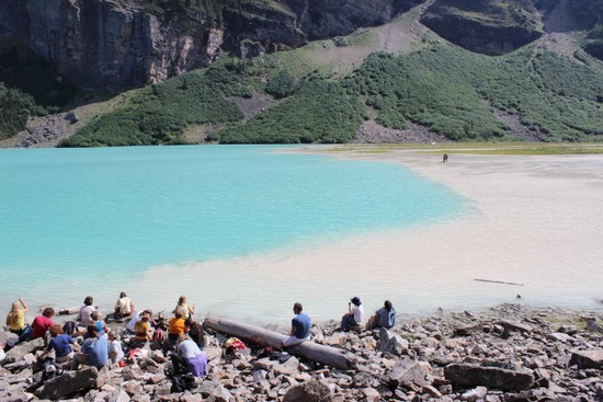 图10:路易斯湖的尽头。路易斯湖最深处达90米,但是这里浅到可以涉水而过。