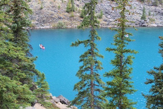 图14:梦莲湖与路易斯湖相隔不远,堪称班夫双璧。但是梦莲湖的美与路易斯湖又有不同。如果说路易斯湖美得像一位高端大气上档次的皇室公主,那梦莲湖就美得像一位冷艳、野性、不羁的山林少女。