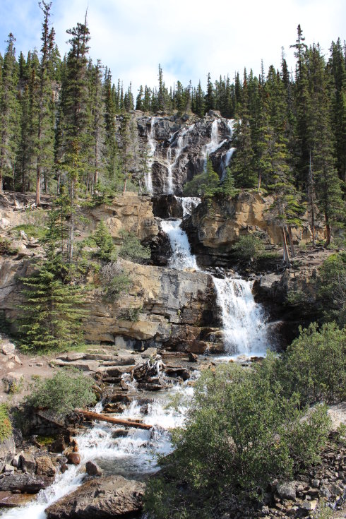 图21:但是在一步一景的落基山中,像Tangle瀑布这样的景点已经显得毫不起眼了,在这里停车观景的人不多,只有几个孩子在瀑布下的水潭边戏水。