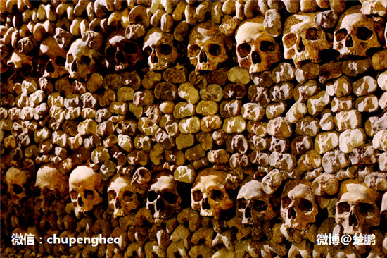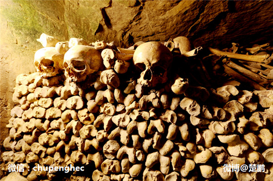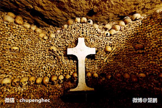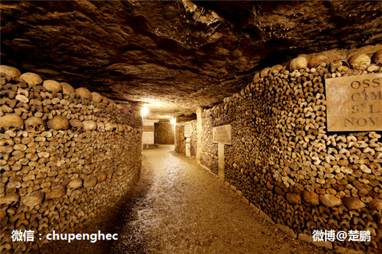 巴黎地下墓穴占地1.1万平方米,阴森恐怖、死寂无声,有超过600万具尸骨长眠在这狭窄的空间里。1994年,巴黎政府将300公里地下隧道中的1公里左右开放为参观区域。