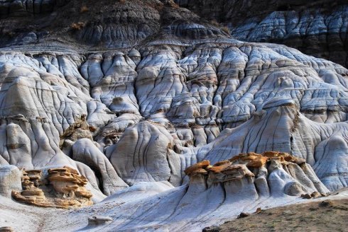 这里是加拿大荒地中心,其荒凉神奇的场景像极了电影中外星球的景色。荒芜的沙土地,色彩异常的岩石,还有由于上百年的岁月风化腐蚀而形成的数米高的“蘑菇柱”,让人觉得下一刻就会有一个大眼睛外星人从“蘑菇柱”里出来——。