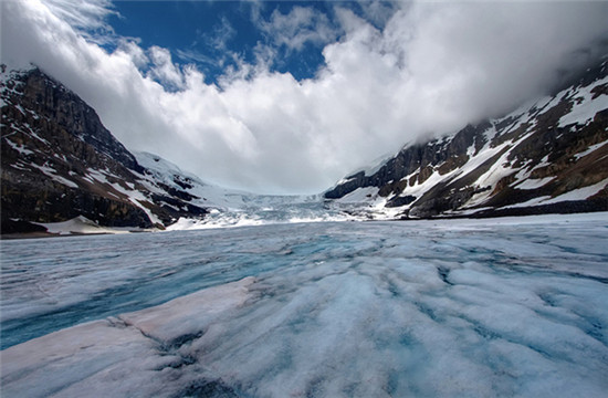 这里还有哥伦比亚冰原冰川,古老冰川融化的雪水分别流向了北美三大洋。每年的4月中旬至10月中旬,游客们可以乘坐配有超大橡胶轮的庞大的“冰原探险号”雪车,前往北美唯一开放阿萨巴斯卡冰川(Athabasca Glacier),一睹冰河的芳泽。