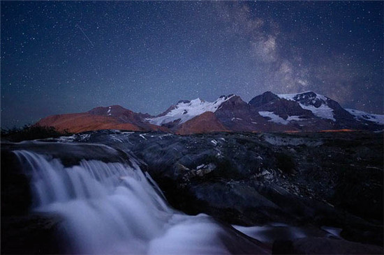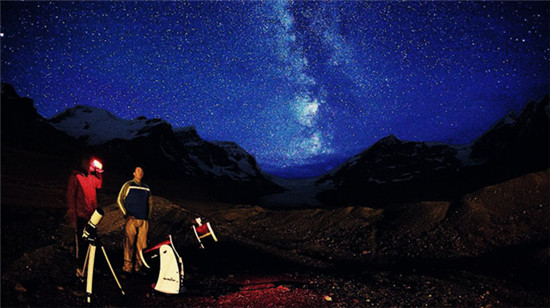 这是世界上最大的暗夜保护区,人们可以观看到银河系的轴心从阿萨巴斯卡冰川的中心缓缓上升
